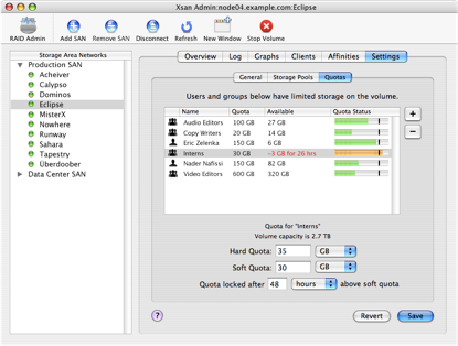 Xsan let users create and manage storage networks that handle terabytes of data at very high speeds.
